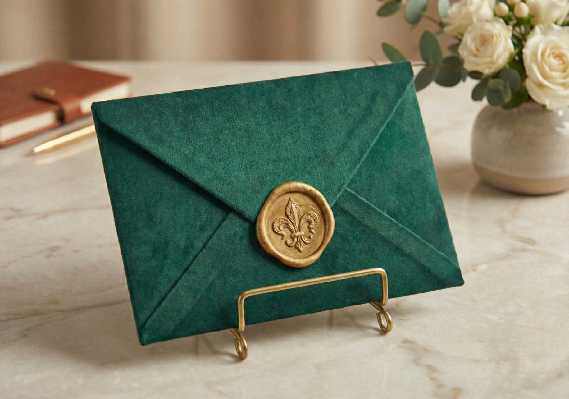 Bársony boríték és arany viaszpecsét